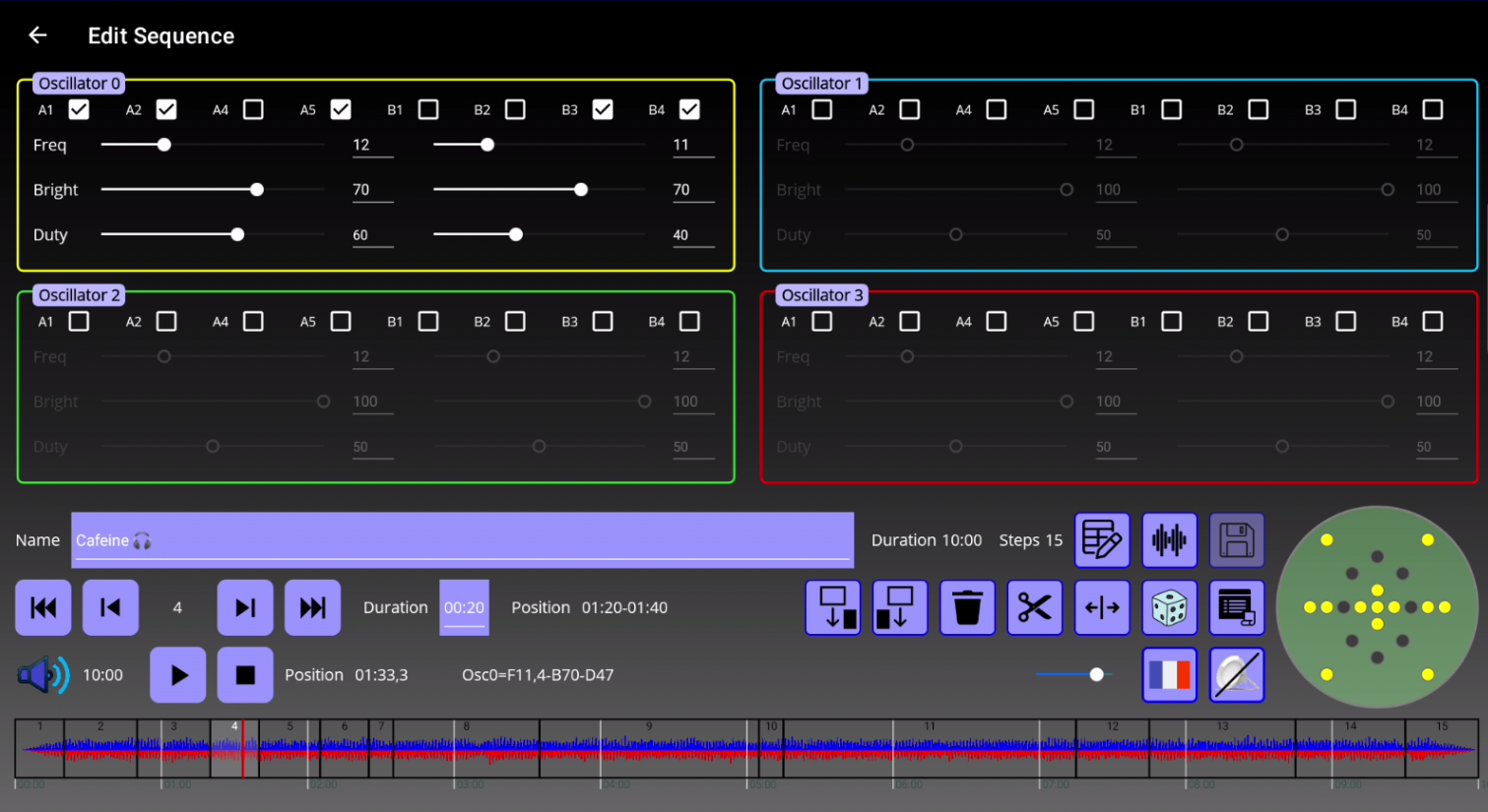 - Réglez vos 4 oscillateurs comme vous voulez
